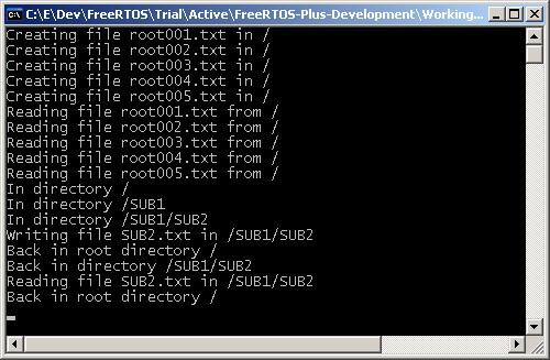Target HardwareThe project creates a RAM disk using the FreeRTOS Windows simulator. The Windows simulator provides a convenient evaluation platform, but it does not exhibit real time behaviour. Simulated time is much slower than real time.